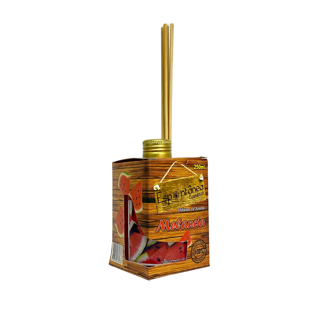 Eleve a atmosfera do seu espaço com o nosso difusor de aromas, infundido com a vivaz essência da melancia. Cada difusão preenche o ar com uma substância refrescante e frutada, transportando você para um jardim de verão exuberante. Deixe-se envolver por um aroma suculento e revitalizante, que desperta os sentidos e cria uma sensação de leveza. Nosso difusor é a escolha perfeita para criar um ambiente acolhedor e convidativo, onde a doçura da melancia transforma cada momento em um instantâneo de felicidade. Celebre a vitalidade e a alegria da melancia, tornando seu espaço um refúgio de frescor e bem-estar aromático.
